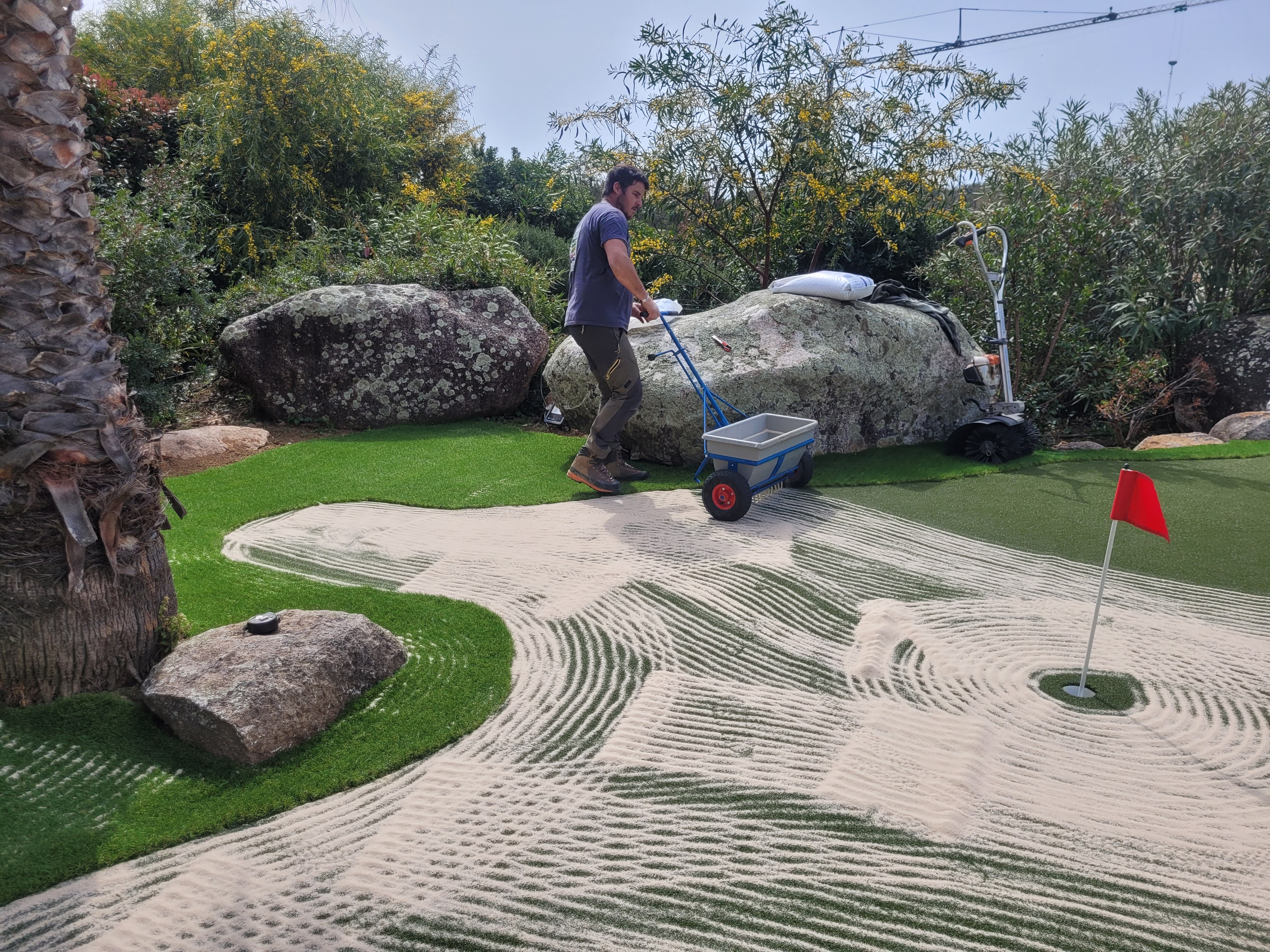 Pose de gazon synthétique pour mini golf à Sainte Lucie de Porto Vecchio