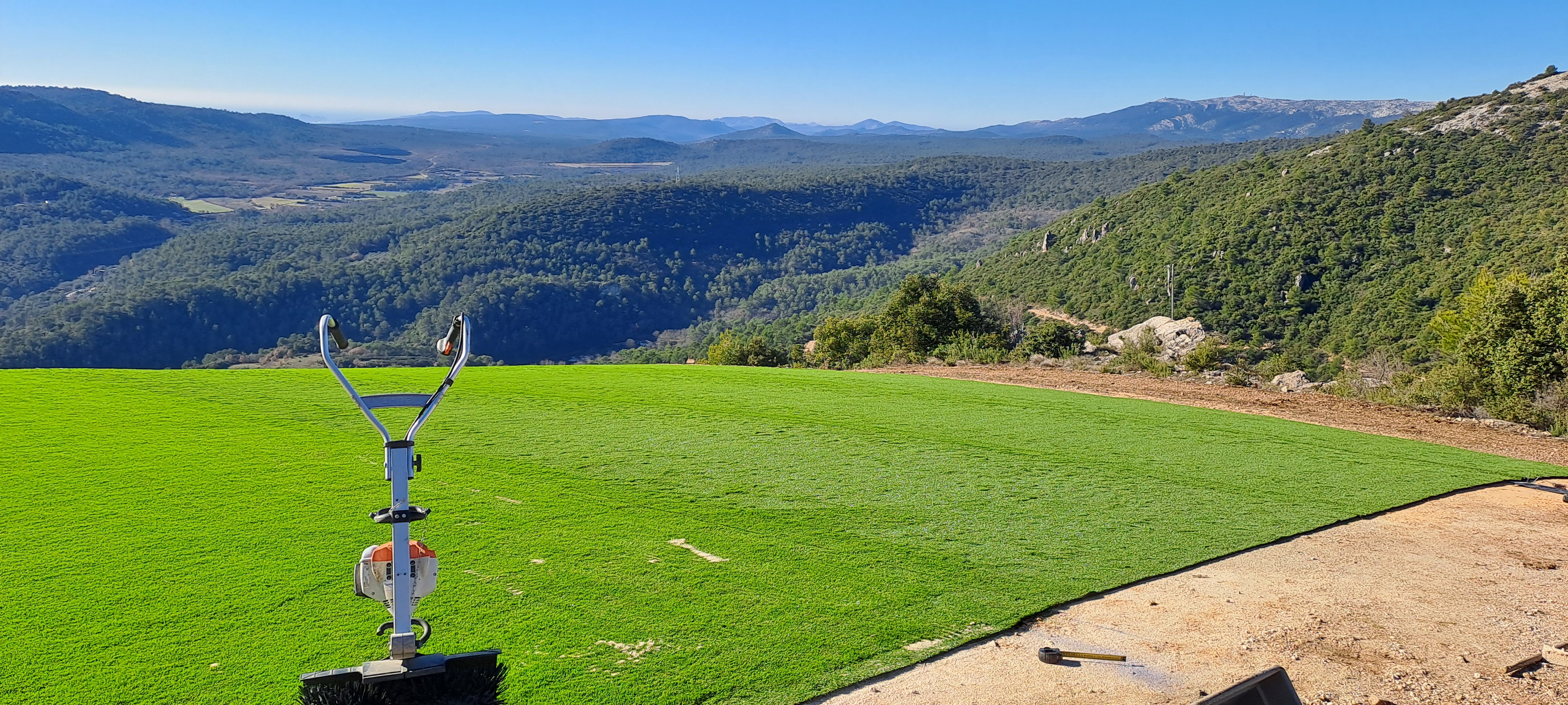 Pose de gazon synthétique