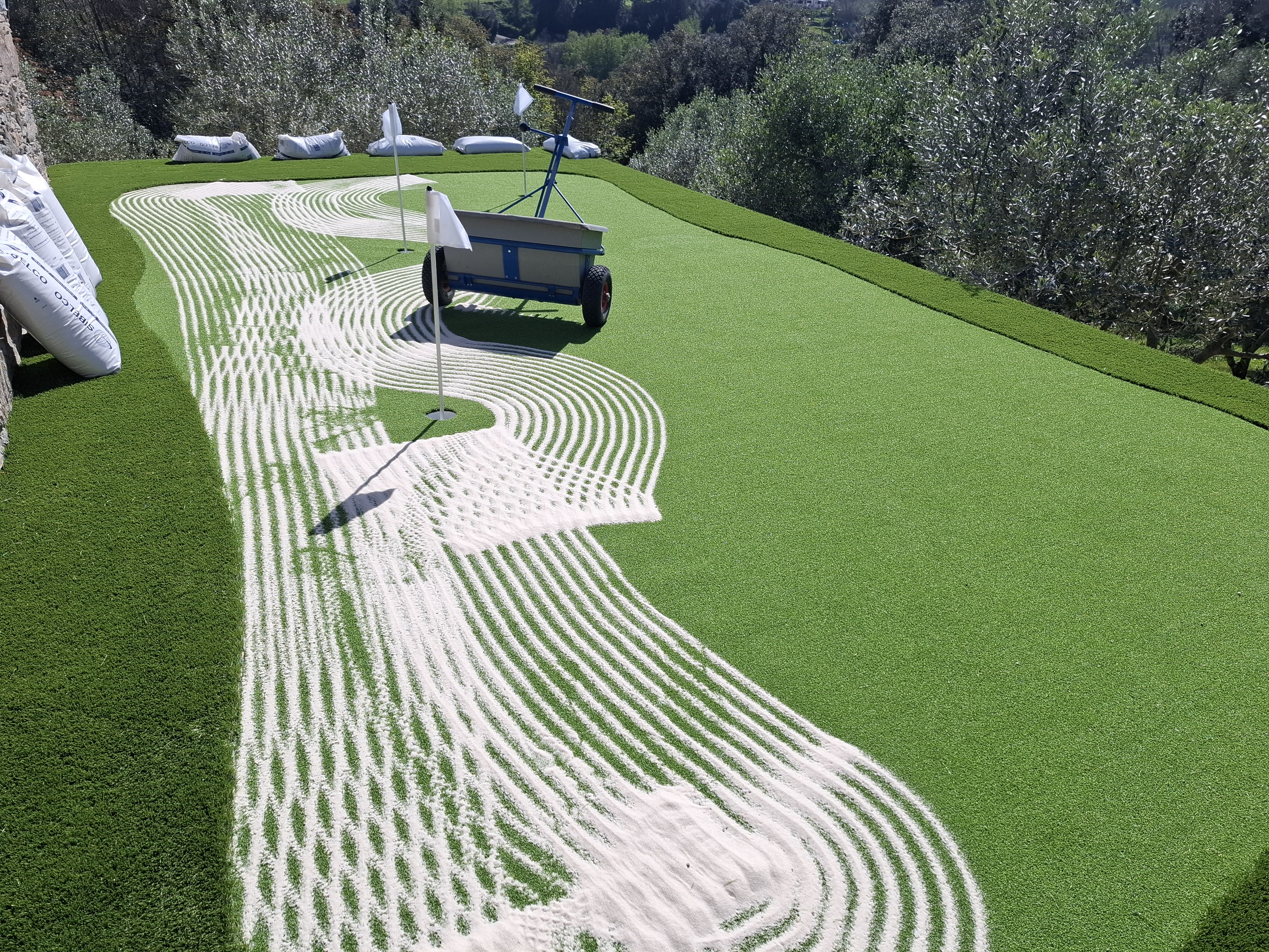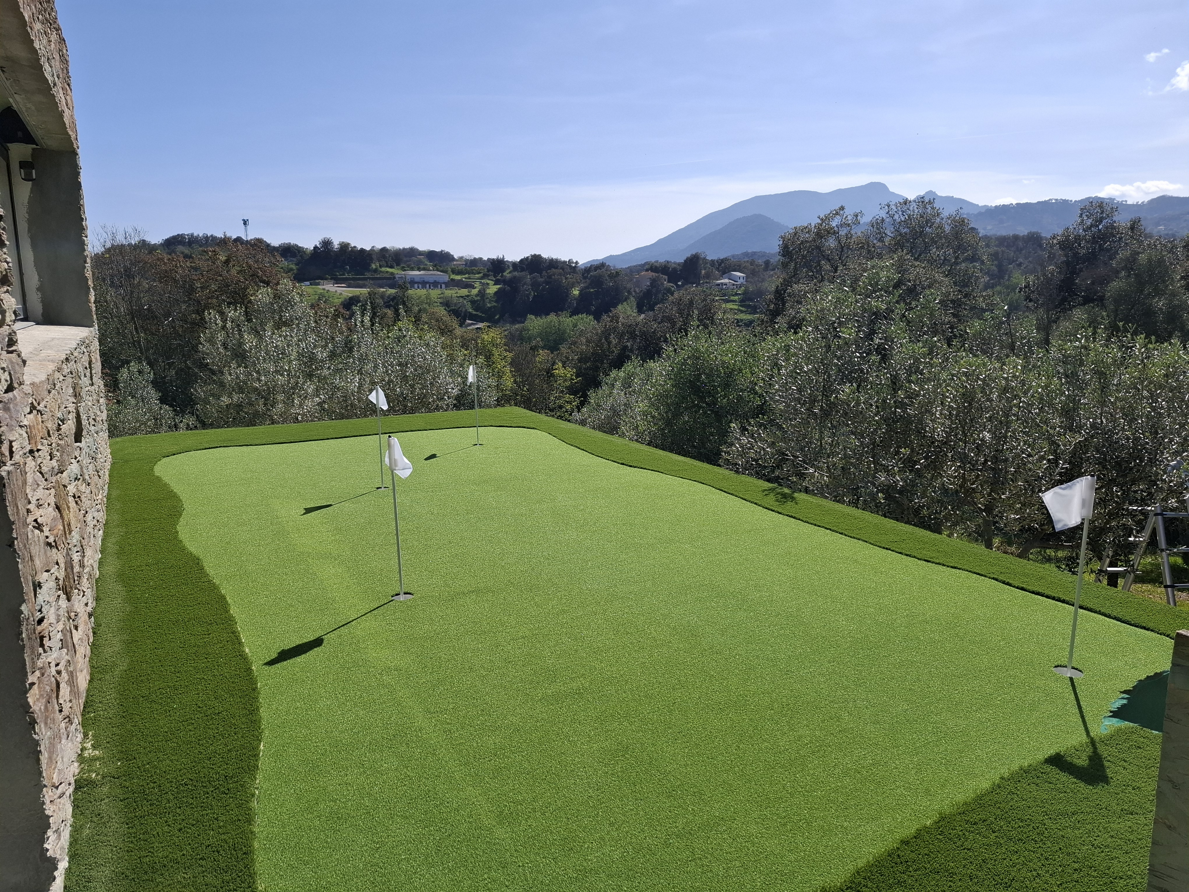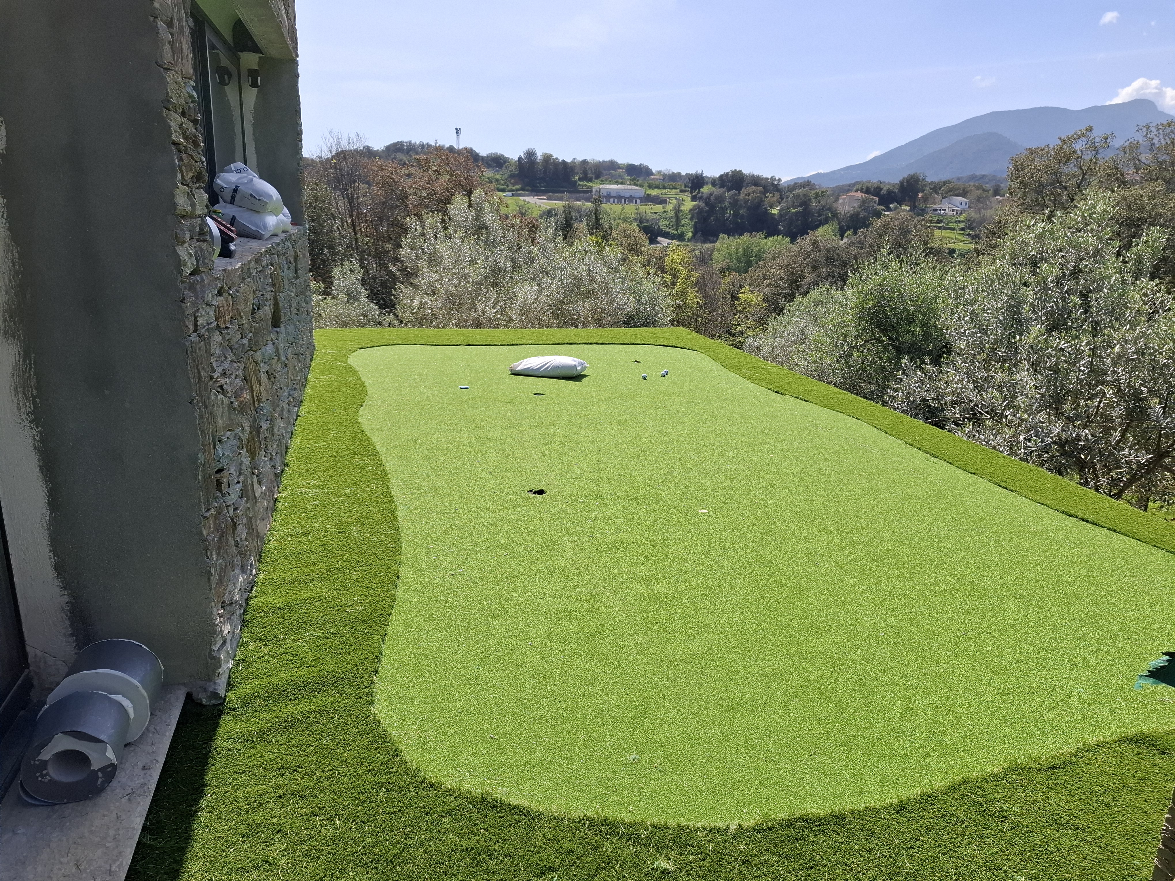 Vente Green a réalisé récemment la pose de gazon synthétique PUTTING GREEN et EVIA 55 pour un minigolf sur toiture en Balagne.