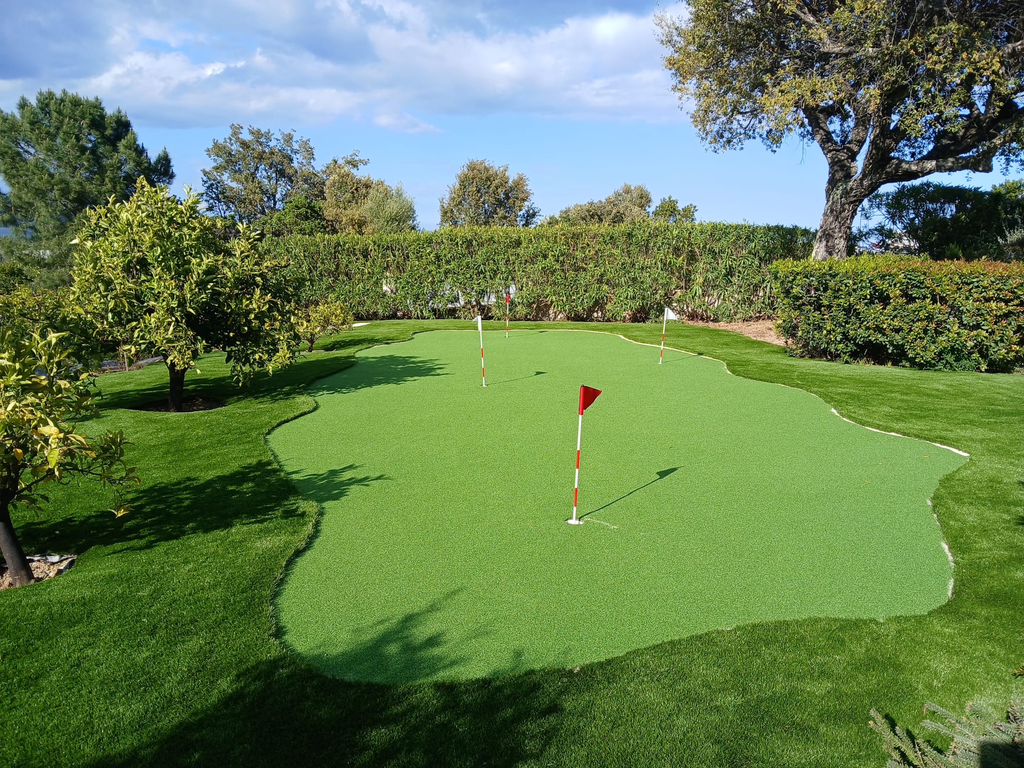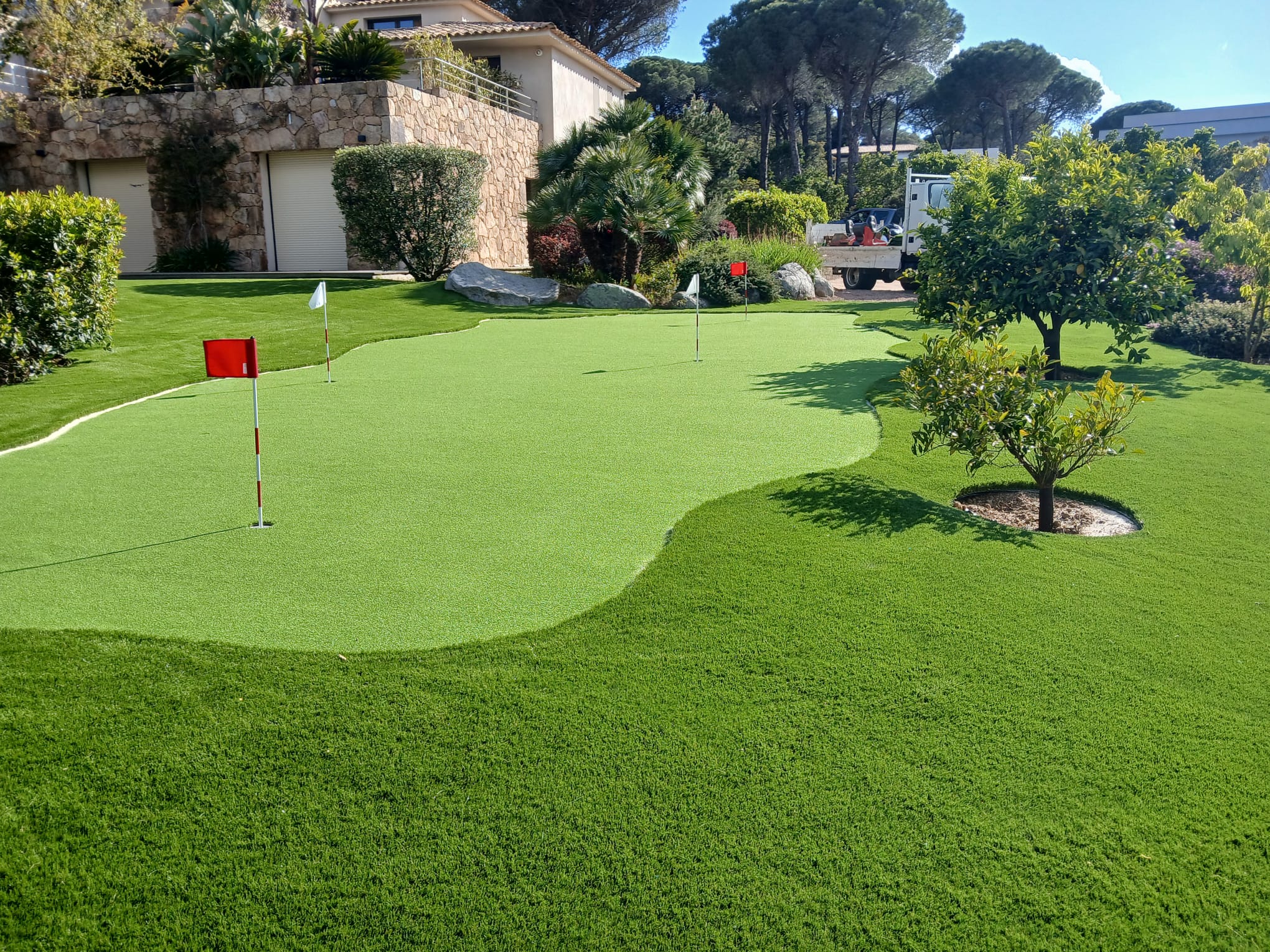 Vente Green a réalisé récemment la pose de gazon synthétique PUTTING GREEN et WILDFLOWER 50 pour un minigolf dans une villa située à Capicciole dans la commune de Sainte Lucie de Porto Vecchio.